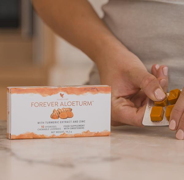 Με την καινοτόμο τεχνολογία του, το Forever AloeTurm™ λύνει αυτό το πρόβλημα. Το ζελεδάκι διαλύεται αργά στο στόμα σας, επιτρέποντας την άμεση και αποτελεσματική απορρόφηση των συστατικών του από τον οργανισμό. Έτσι, εξασφαλίζεται η μέγιστη δυνατή αξιοποίηση των ευεργετικών ιδιοτήτων του κουρκουμά και του ψευδαργύρου.