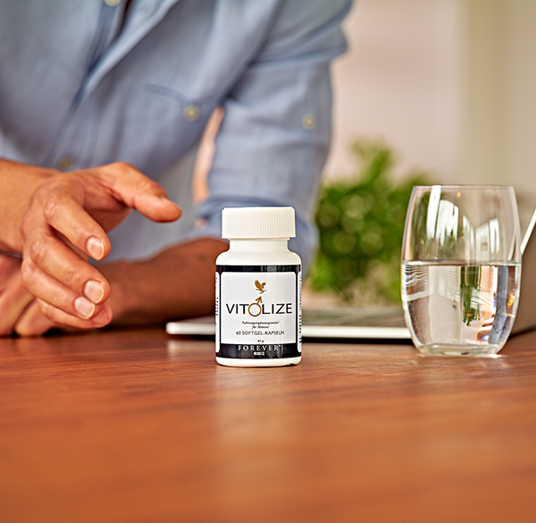 Το Vit♂lize Men™ της Forever Living είναι ένα συμπλήρωμα διατροφής ειδικά σχεδιασμένο για την υποστήριξη της ανδρικής υγείας. Περιέχει ένα ισχυρό μείγμα βοτάνων, βιταμινών (D, E, C, B6) και μετάλλων όπως ψευδάργυρος και σελήνιο. Ο ψευδάργυρος συμβάλλει στη φυσιολογική γονιμότητα και αναπαραγωγή, ενώ το σελήνιο στην κανονική σπερματογένεση. Επιπλέον, τα συστατικά του ενισχύουν τη φυσιολογική λειτουργία του ανοσοποιητικού συστήματος. Χωρίς γλουτένη. Λαμβάνετε δύο μαλακές κάψουλες ημερησίως.